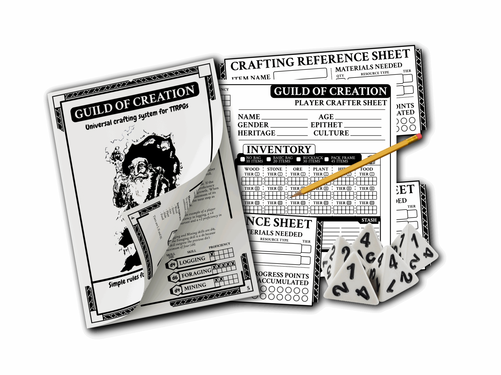 Eindelijk een mogelijkheid om al die tools uit jouw TTRPG in te zetten op een makkelijke manier. Aan de hand van heldere regels verzamel, maak en groeit jouw held uit tot ervaren crafter.